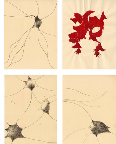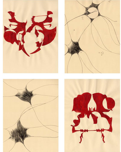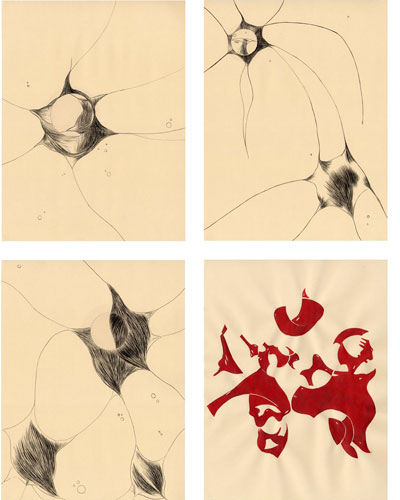 , 2005, ink and collage on paper, a series of 16 drawings, 10”x13” each.