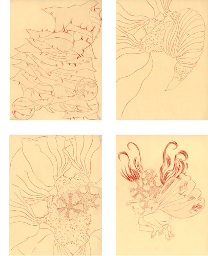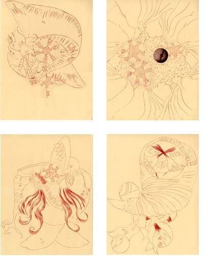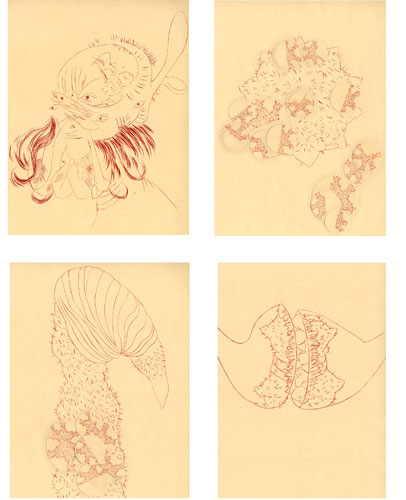 , 2004, ink and collage on paper, a series of 16 drawings, 10”x13” each.