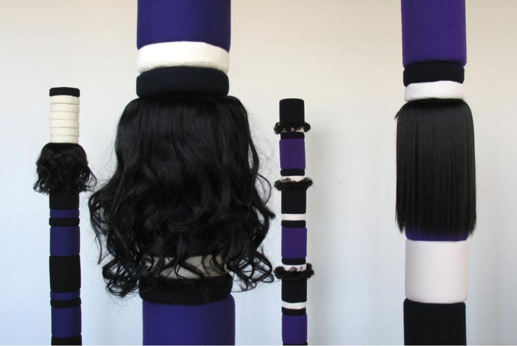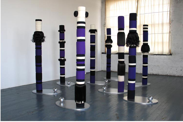 , 2005, metal, mdf, paint, foam, fabric, hair, plastic balls, 8 x 77”x28”x18” each.
