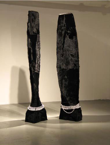 , 2005, calf skin, aluminum foil, polystyrene, wood, aqua resin, 2x 71"x16”x8”.