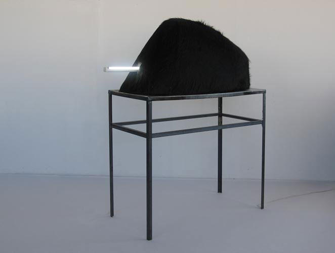 , 2006, cow skin, polystyrene, polymer, fluorescent light, metal, 48”x19”x56”.