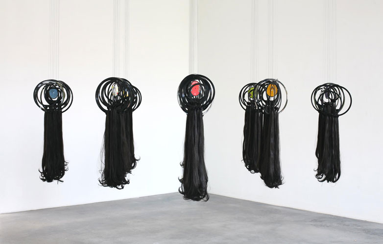 , 2007, records, hair. Variable dimensions.