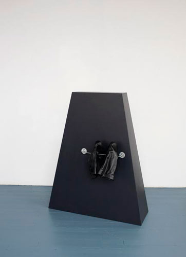 , 2008, plywood, paint, metal, boots, 36”x12”x44”.