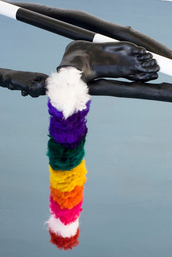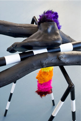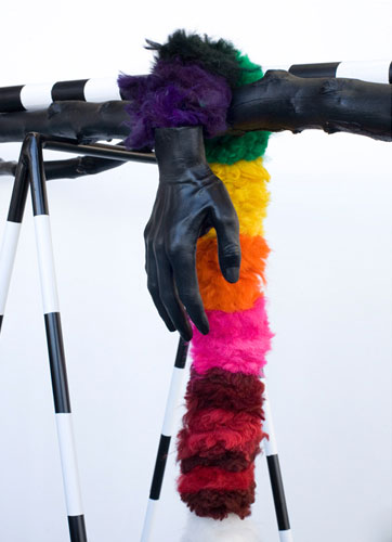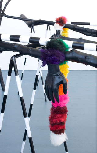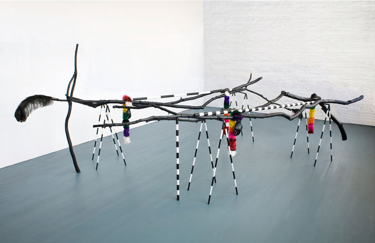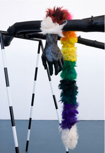 , 2011, metal, branches, wood, fur, rubber, feathers, app. 66" x 188" x 85".