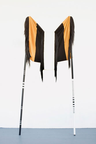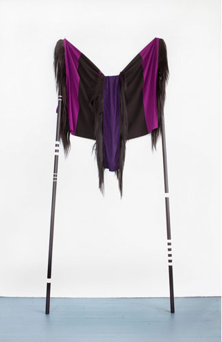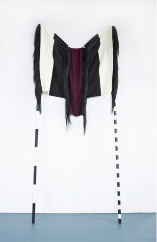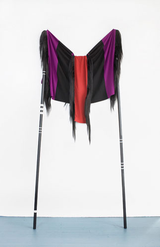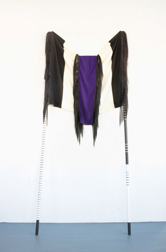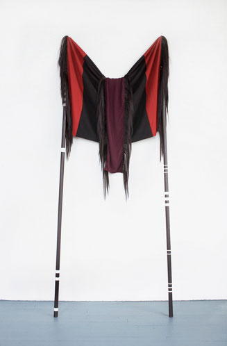 , 2013, fabric, hair, wood, paint; app. 45"x96"x13".